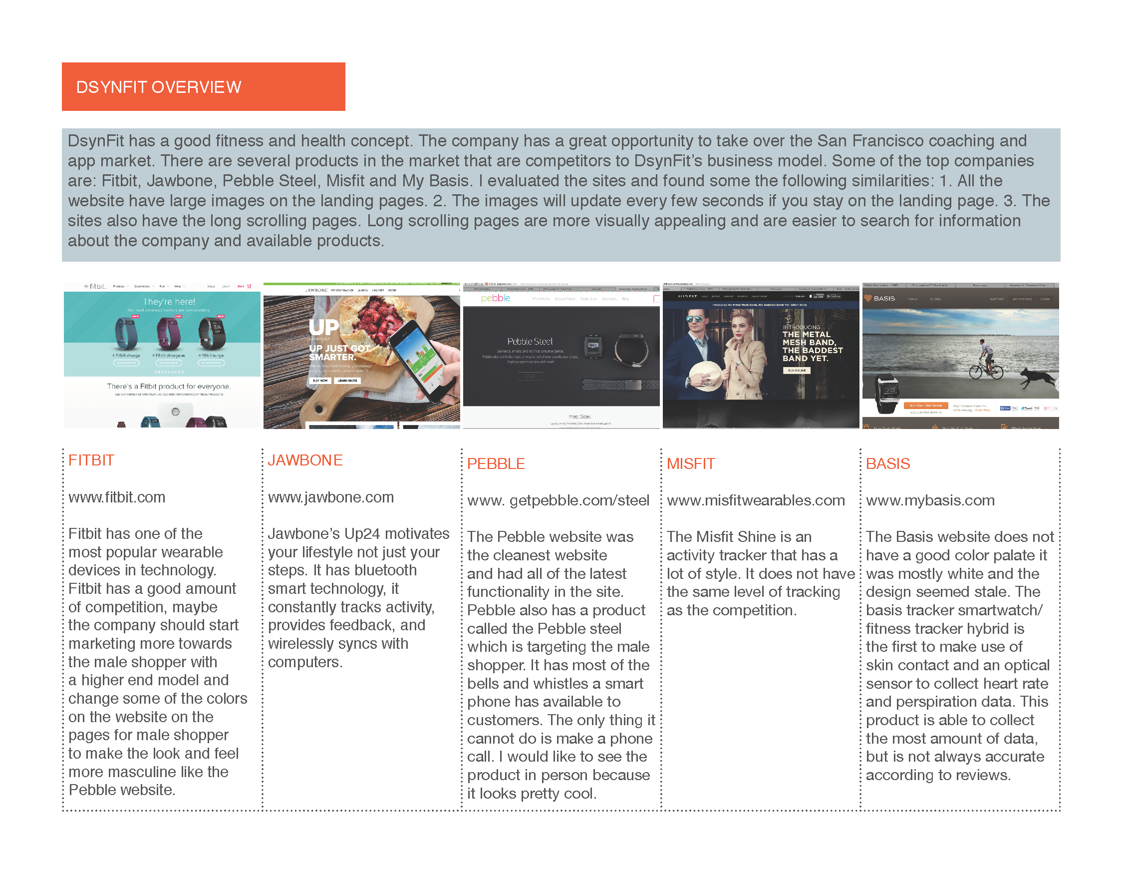 The linked competitive analysis was researched and designed in InDesign for a fitness website during my coursework this semester at CCSF .